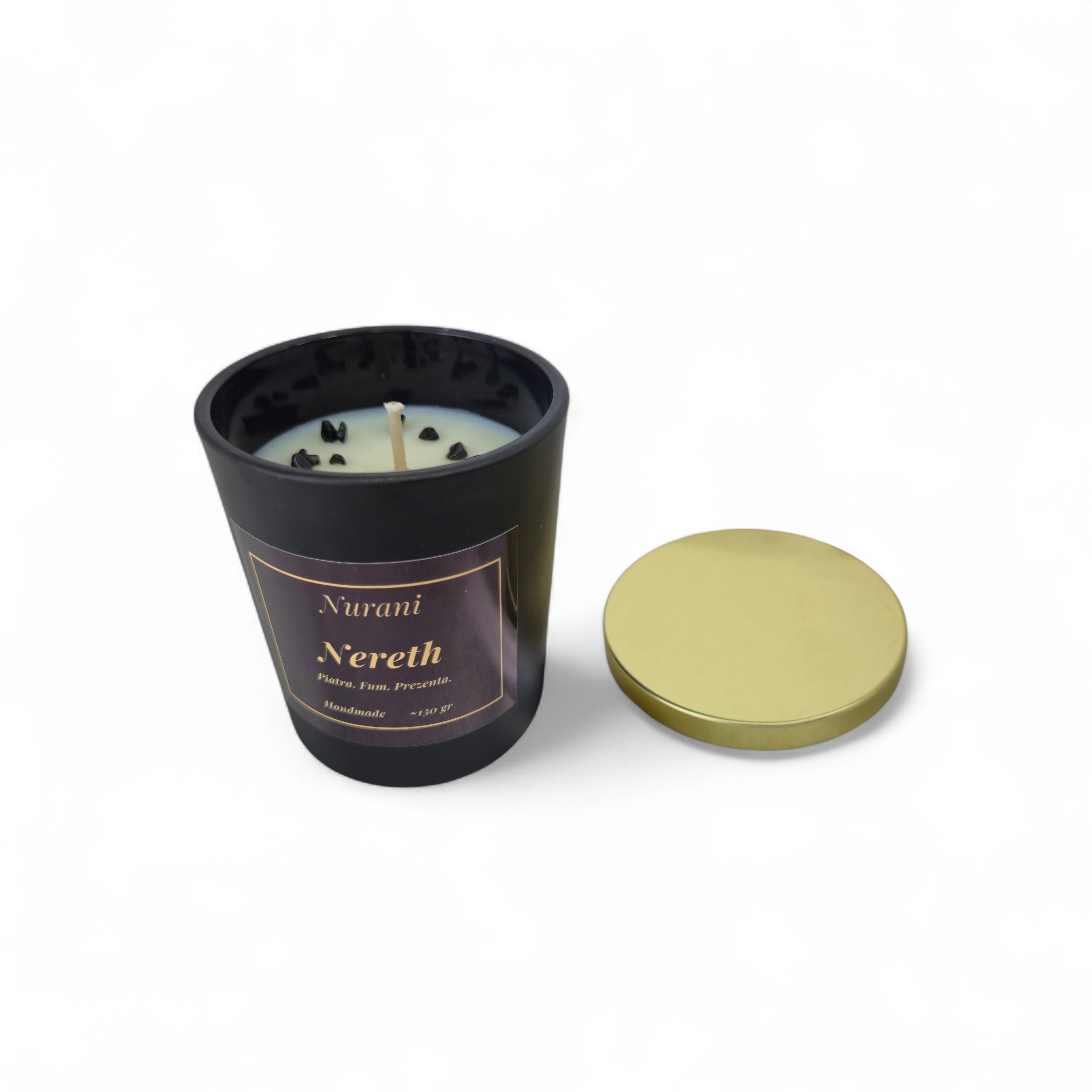 Nereth este despre protecție lucidă și prezență clară. Cu turmalina neagră – piatra ancorării și a absorbției energiilor negative – și un amestec de uleiuri esențiale de tămâie și bergamotă, această lumânare echilibrează între profunzime și prospețime.